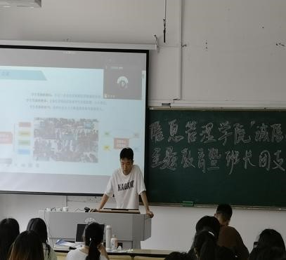 会议第三项议程由段其萌介绍团支书相关事宜。段其萌先是对学院本学期团委工作进行了总结,并就学院未来团务工作对各班级团支书进行了讲解,着重讲解了2022届学生团务助理选拔和暑期社会实践活动中团支书的工作职责,鼓励各团委对学院发展提出建议。