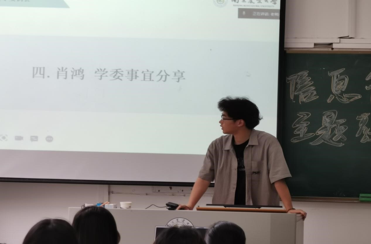 会议第四项议程由学生会副主席肖鸿就学委事宜进行介绍。萧鸿首先就学院本学期学生会学习部工作进行了总结,并汇报了学习部近期工作;之后,他向各班委说明了所需配合的工作,并就部分问题进行了解答。