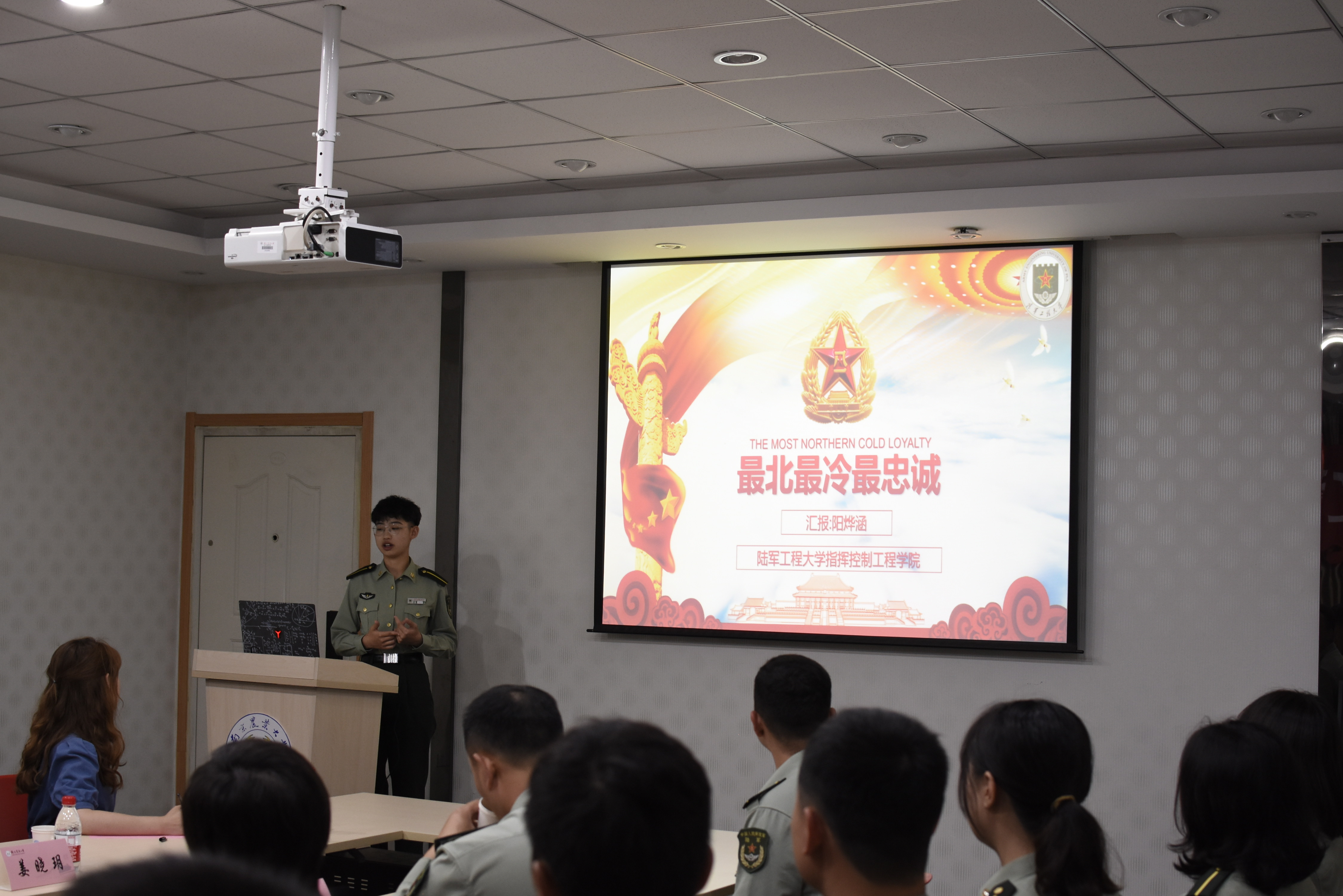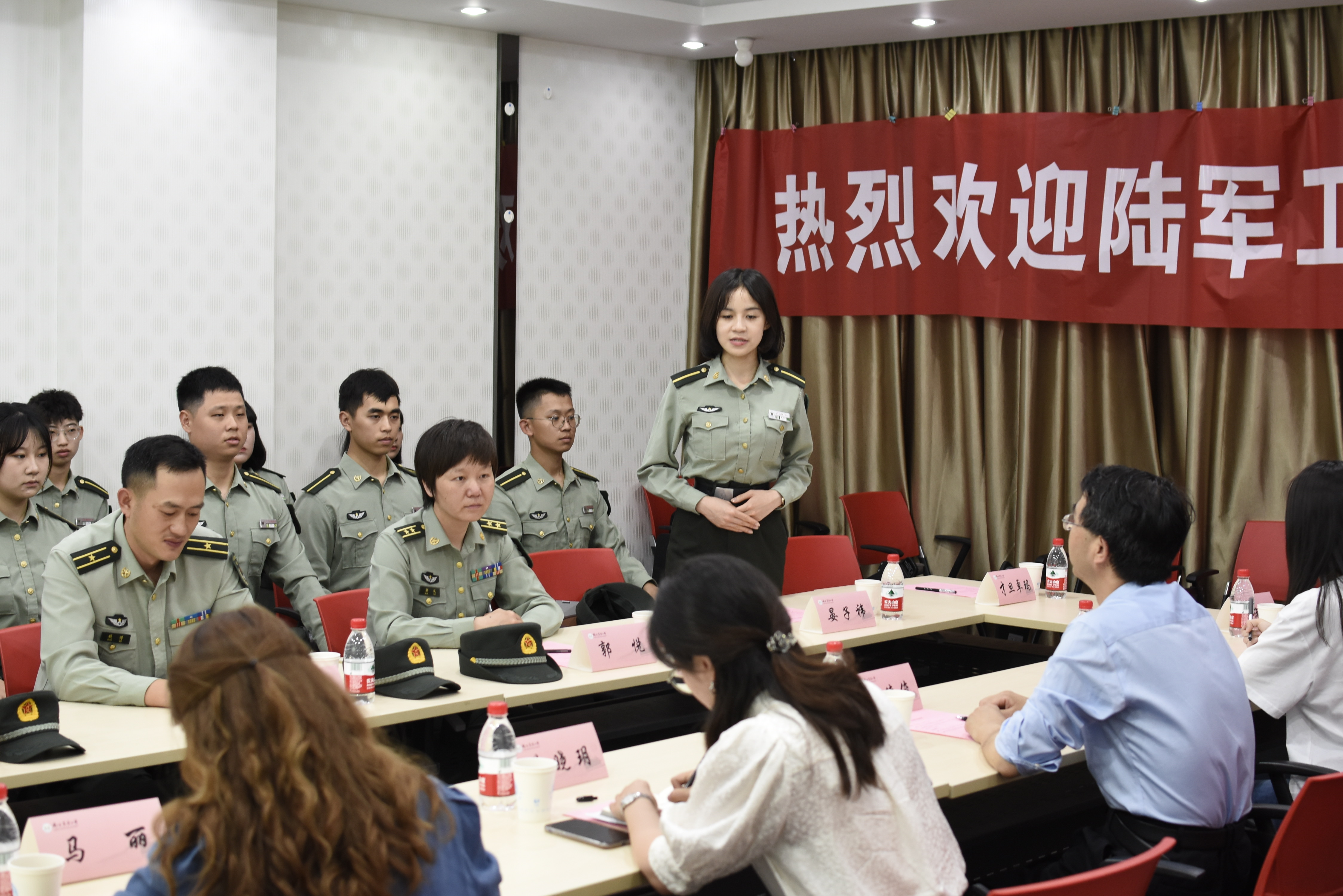 活动伊始,在南农大卫岗校区教学中心楼三楼会议室,举办了见面会及边防故事汇报会。万啸宇同志,来自新疆,曾获“精武杯”军事比武奖项,分享了他成长历程中,和在边境会晤站工作的军人父亲相处的点点滴滴,他向往着自己的孩子也能像如他一般崇拜父亲,站在同志们的面前自豪地介绍自己,将这份“军人的选择与热爱”延续,浓厚的家国情怀深深感染了与会成员,不少同学现场留下了感动的泪水。来自漠河的阳烨涵同志,进行了《最北最冷最忠诚》的主题分享,分享中,他抑制不住激动的心情,数次哽咽,打动了每位在场的同学。贾粤凡同志,父亲是一名飞行员,在十分危险的工作环境中拼搏奋进,曾立二等功等荣誉,父亲的精神品质对他产生了深刻的影响。还有其他同志分享了自己的母亲含辛茹苦拉扯自己长大成人的军人家属故事,也有祖孙三辈皆为军人的家族传承、红色基因延续的故事,等等。同龄人的故事让与会人员深受触动、印象极为深刻。