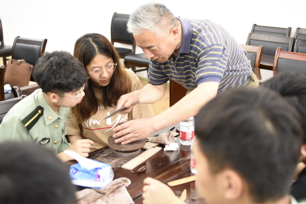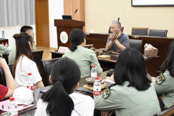 会后,双方前往中心楼七楼报告厅,由宗良纲教授讲座《紫砂陶艺欣赏与创作》,并现场指导成员创作紫砂作品。支部党员马丽说:如果说我们生活的这片土地给我们留下了最大的礼物,我觉得一定有这两件吧,一件是历史,一件是文化,前者可借鉴,后者可润心。今天的紫砂陶艺赏析与体验,我们就有幸遇到这么一位“润心人”,带领我们一起感受这奇妙的艺术之旅。