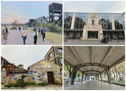 在浦口火车站旧址,大家驻足而观,聊起了孙中山先生灵柩运抵南京、解放军发起渡江战役、朱自清在此写下《背影》等情景。穿过弧形拱门的瞬间,大家好像也穿越回了民国时期。在浦口码头前、铁路轮渡桥边,大家仿佛又看到了昔日此地的繁华。