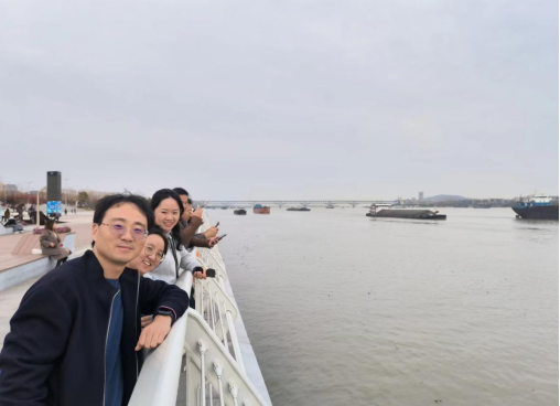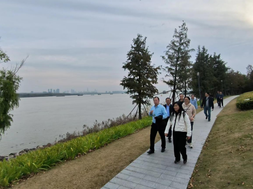 随后,大家来到扬子江生态公园,沿着滨江休闲步道漫步。公园内湿润的江风迎面而来,宜人的江景让人陶醉,在超大观江平台“宏波秀台”上,大家临江眺望南京长江大桥车水马龙、长江五桥三座钢混组合索塔犹如三根洁白的玉簪点缀在江面。放眼望去,江面轮船往来如织,一江碧水波涛汹涌,景色如诗如画。