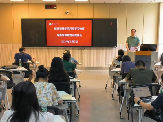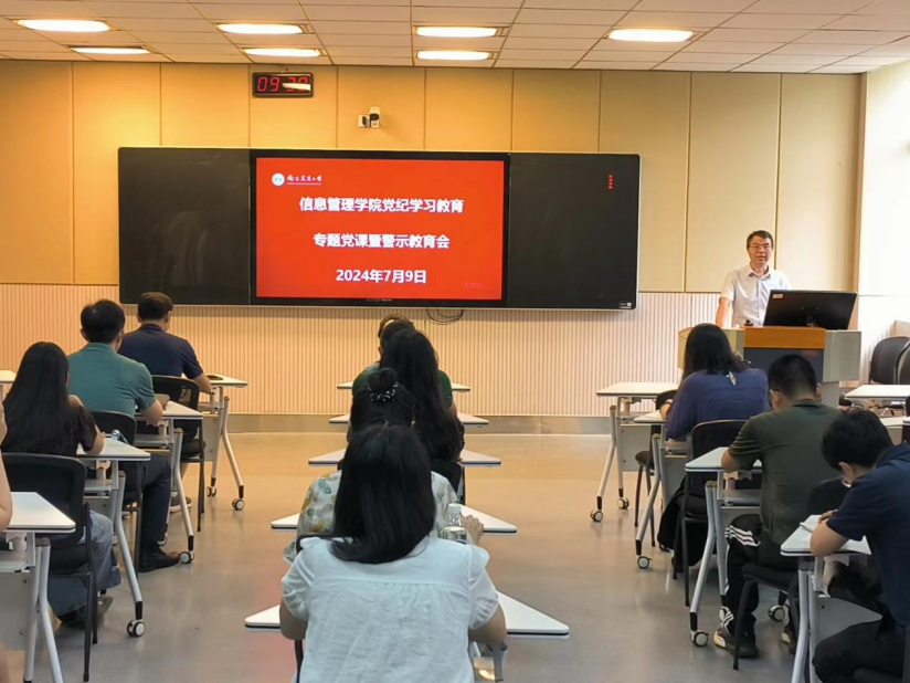 为持续推动党纪学习教育走深走实,突出以案促学、以案说纪这个重点,7月9日,学院党委在汇贤楼B403室举办党纪学习教育专题党课暨警示教育会。学院全体教师党员参加会议。