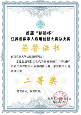王东波教授团队指导的非遗智语团队基于全国首个非物质文化遗产领域的大语言模型推出基于大语言模型设计的数字人形象,荣获二等奖,为非遗文化的保护与传播开辟了新路径。