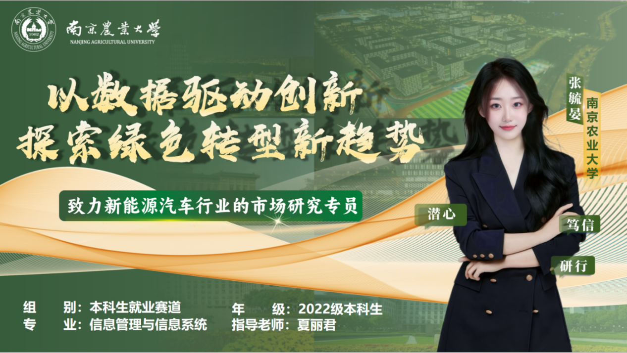 在本次职业生涯规划大赛中,她清晰而坚定地阐述了自己的职业目标——成为一名致力于新能源汽车行业的市场研究专员。以数据驱动创新,探索绿色转型新趋势。她将专业所学与个人兴趣紧密结合,积极投身于各类科研实践项目,深入学习专业本领,洞察当代社会发展新趋势与行业前沿动态。作为一名学生干部,她始终秉持“全心全意为同学服务”的初心,脚踏实地、恪尽职守,以高度的责任感和务实的态度完成每一项工作。