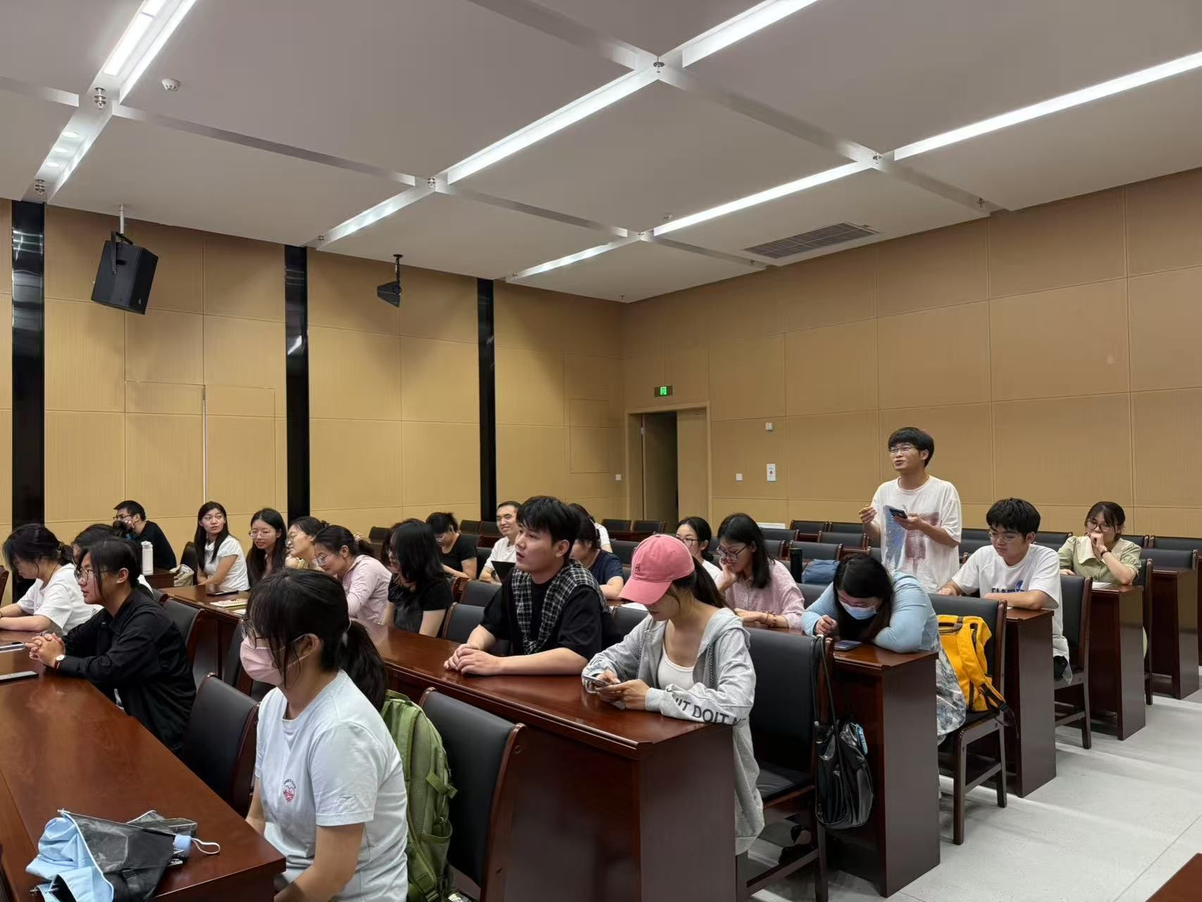 讲座现场气氛活跃,同学们认真聆听并记录要点。在问答互动环节, 史双建与在场师生进行了深入交流。面对同学们的提问,史双建结合行业发展、单位需求 ,详细分析了行业趋势及人才能力要求。讲座的最后,史双建就单位目前的校招和实习招聘需求进行了进一步介绍,对学院毕业生给出了较高的评价,并现场接收了同学们的简历。