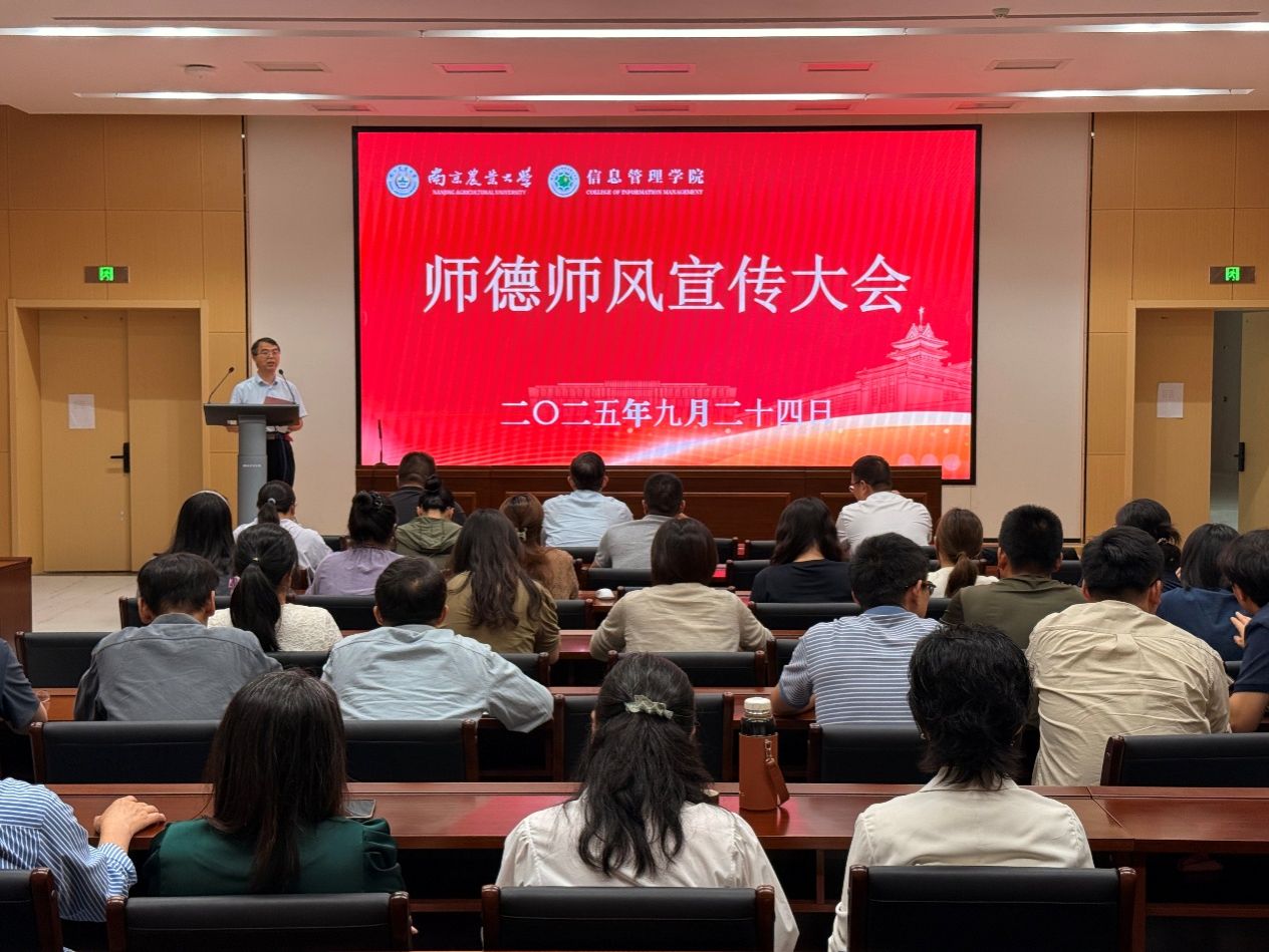2025年9月24日,学院召开师德师风宣传大会。会议深入学习贯彻学校党委关于师德师风建设的部署要求,进一步推进学院师德师风教育。学院党政领导、各教师党支部书记、全体教师党员参会。