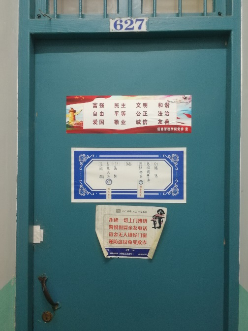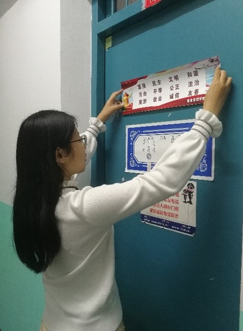 学生会生活服务部在确定了以张贴标语来进行宣传为主要活动形式后,众人集思广益,商讨并制作切合本次活动主题的标语。此后,生活服务部成员组织各班生活委员进入社区,到各个宿舍进行讲解和宣传,并将相应的标语张贴于宿舍门上。从自身做起,从现在做起,践行社会主义核心价值观,对个人发展、社会进步、国家强大有着深远的意义!