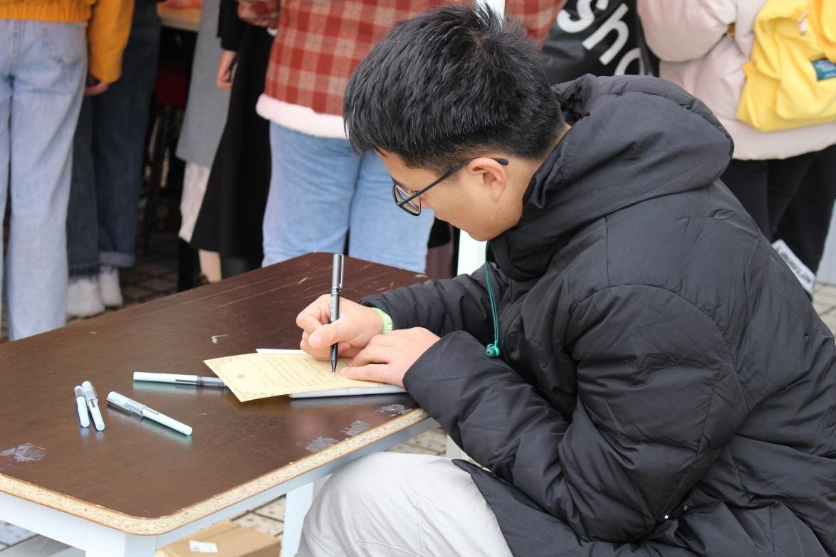 活动中,综合事务部工作人员分工明确,积极热情的为参与活动的同学介绍活动内容,并帮助他们参加活动。参与者按照指引,有序的报名,领取自己喜欢的信封。在领取信封后,同学们可在规定时间内写下自己的烦恼忧愁交于性爱片