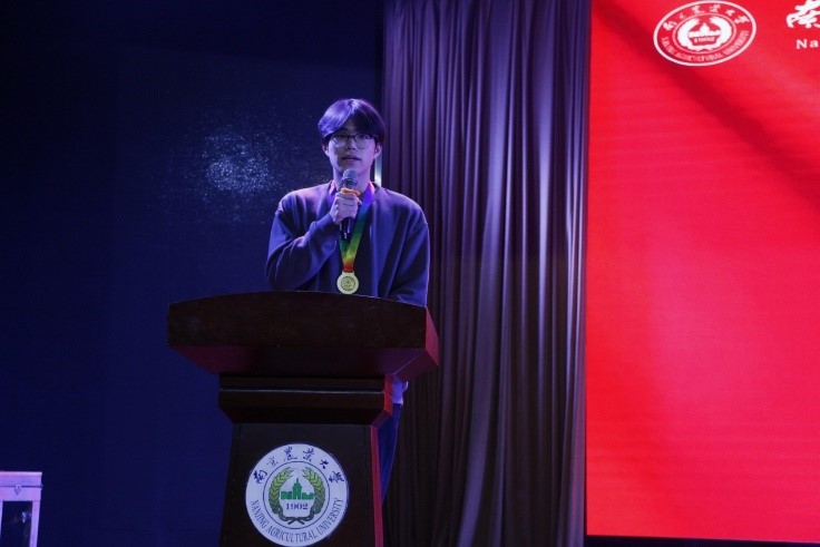 学生会主席,他代表全体团务助理表达了对新生的关切和美好祝愿,同时他指出在以后的日子里,希望能够带领同学们积极向上,奋勇追梦。