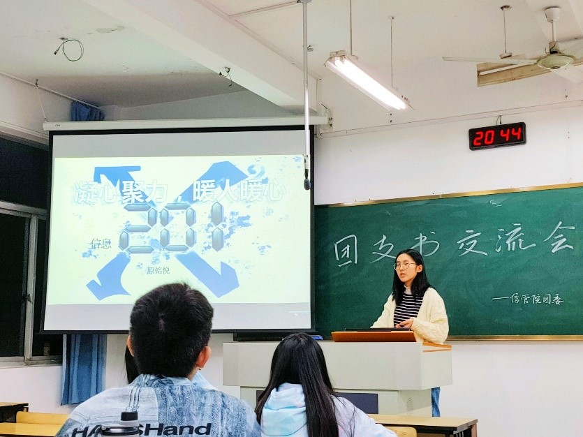 在汇贤楼B504开展了新生先锋支部立项交流会暨团支书交流会,2020级,2021级各班团支书共同参与。会上团委副书记李宇翰、团委常委兼部长侯小雨、党员发展部副部长赵妍分别发言,并邀请到2020级团支书原铭悦分享经验。
