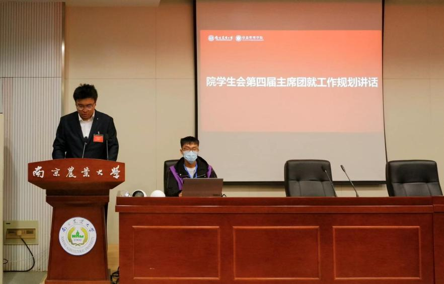 随后,李娜公布了院第四届学生会主席团名单,夏鑫楠同学、明雨洁同学、邵祖钰同学分别上台讲话,对新一届学生会主席团工作规划进行简述。