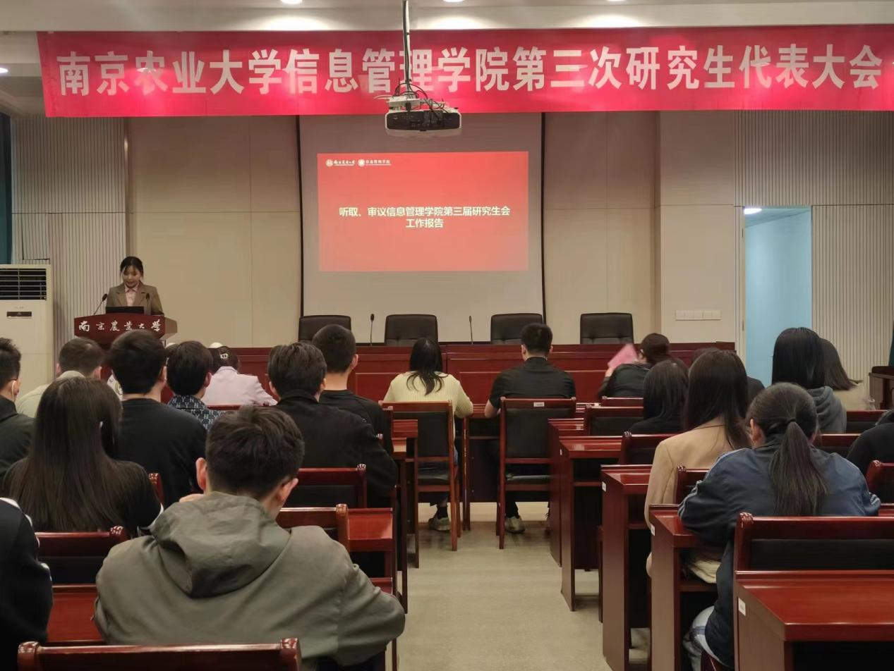 第二次研究生代表大会以来的工作。报告总结,第三届研究生会始终坚持以“全心全意为全体研究生服务”为宗旨,遵循“引领、团结、高效、创新”的工作理念,以服务同学成长成才为根本出发点,以搭建学院与学生沟通桥梁为工作重点,组织开展了一系列学生活动,营造了浓厚的校园文化氛围。