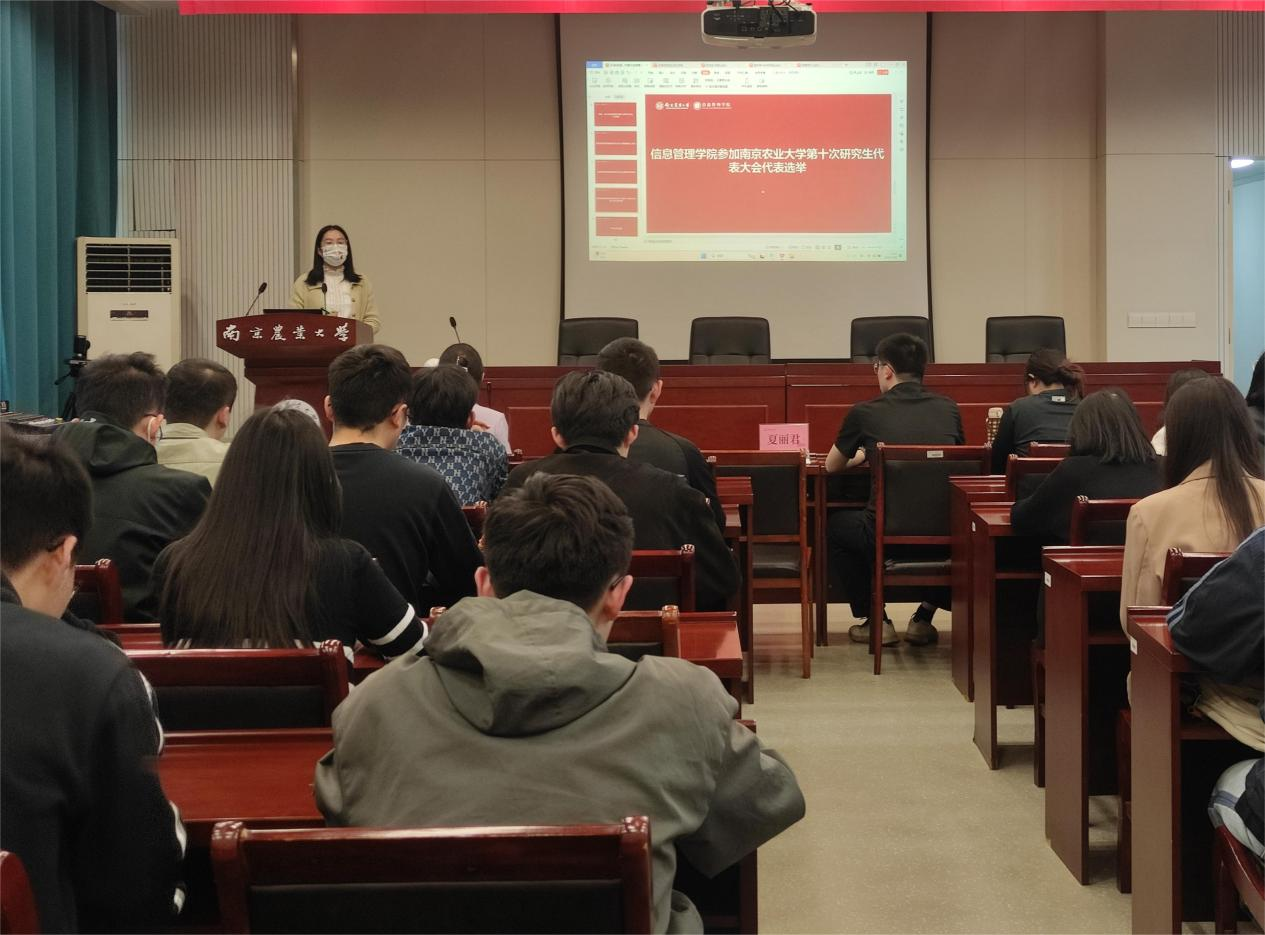 第三次研究生代表大会在育贤楼C502召开。院团委副书记夏丽君老师、院研究生会第三届主席团、全院各专业研究生代表参加会议。大会伊始,全体起立奏唱《中华人民共和国国歌》。