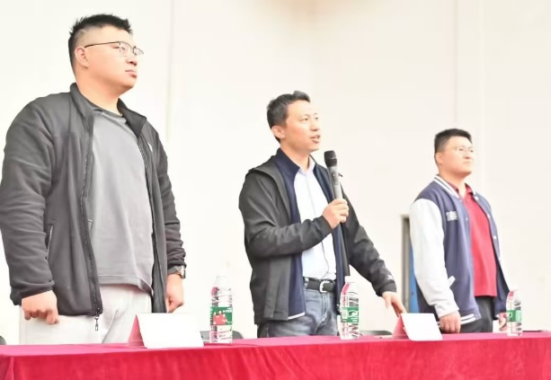 党委副书记裴海岩、本科生辅导员蒋乐畅、夏鑫楠出席开幕式。仪式伊始,全体大一新生方阵入场,各个班级响亮的口号、矫健的步伐以及自信的面庞展现出他们必胜的决心。随后,伴随着庄严的国歌声,国旗护卫队擎着鲜艳的五星红旗,步伐整齐划一地通过主席台,全体师生肃立,表达对祖国的无限热爱与崇高敬意。最后,裴海岩书记为此次运动会致辞,预祝全体学生弘扬体育道德风尚,取得竞赛成绩和精神文明双丰收。