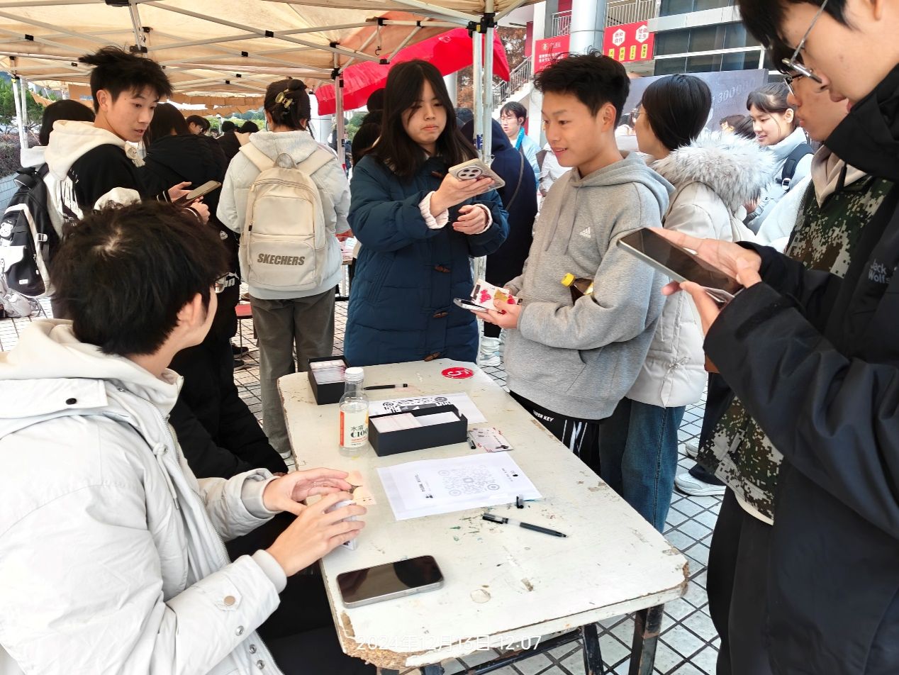 黑色的明信片映照出今日的情感,同学们用金色、银色的笔在沉重的背景下书写和平祈愿与祝福。这些明信片不仅表达对遇难同胞的深切悼念,更蕴含对和平的殷切期望。同学们将明信片悬挂在帐篷周围,供过往同学共同查看,传递和平理念。