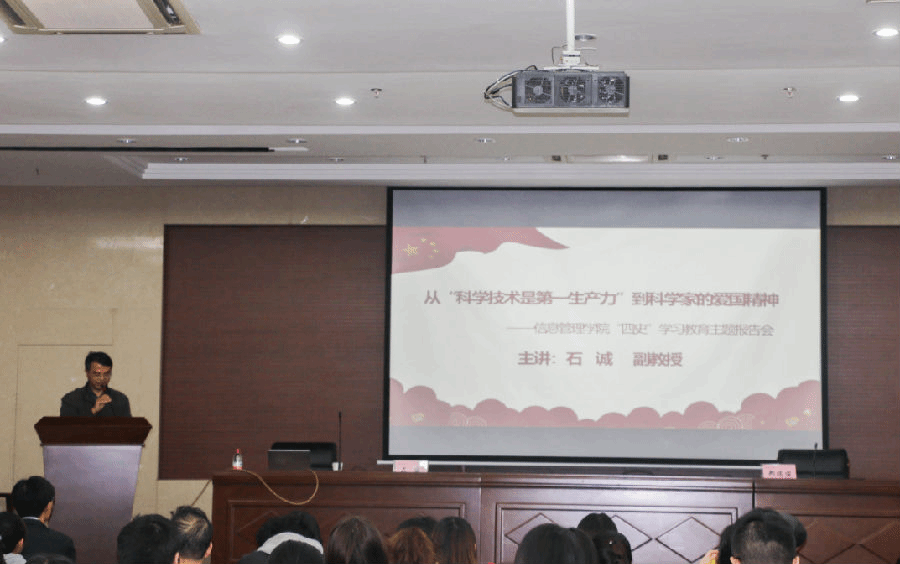 报告会特邀马克思主义学院石诚副教授,作《从“科学技术是第一生产力”到科学家的爱国精神》专题报告。石诚回顾了“科学技术是第一生产力”论断的形成与发展过程,指出该论断是邓小平对马克思主义科技学说和生产力理论的创造性发展,是有中国特色社会主义理论的重要组成部分,为中国特色科技发展道路的探索明确了方向。石诚着重介绍了新中国在发展各阶段制定的重大科技政策,特别是党的十八大以来,习近平总书记高度重视科技创新工作,坚持把创新作为引领发展的第一动力,阐述了科学成就离不开精神支撑,广大科技工作者在祖国大地上树立起一座座科技创新的丰碑,也铸就了独特的精神气质,以钱学森、袁隆平等为代表的科学家们理应成为时代的偶像。