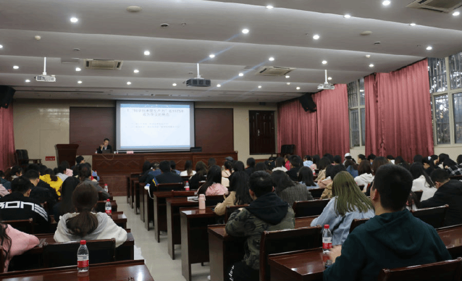 在资环院报告厅举办“四史”学习教育专题报告会,学院师生党员共百余人参会学习,报告会由学院党委书记郑德俊主持。