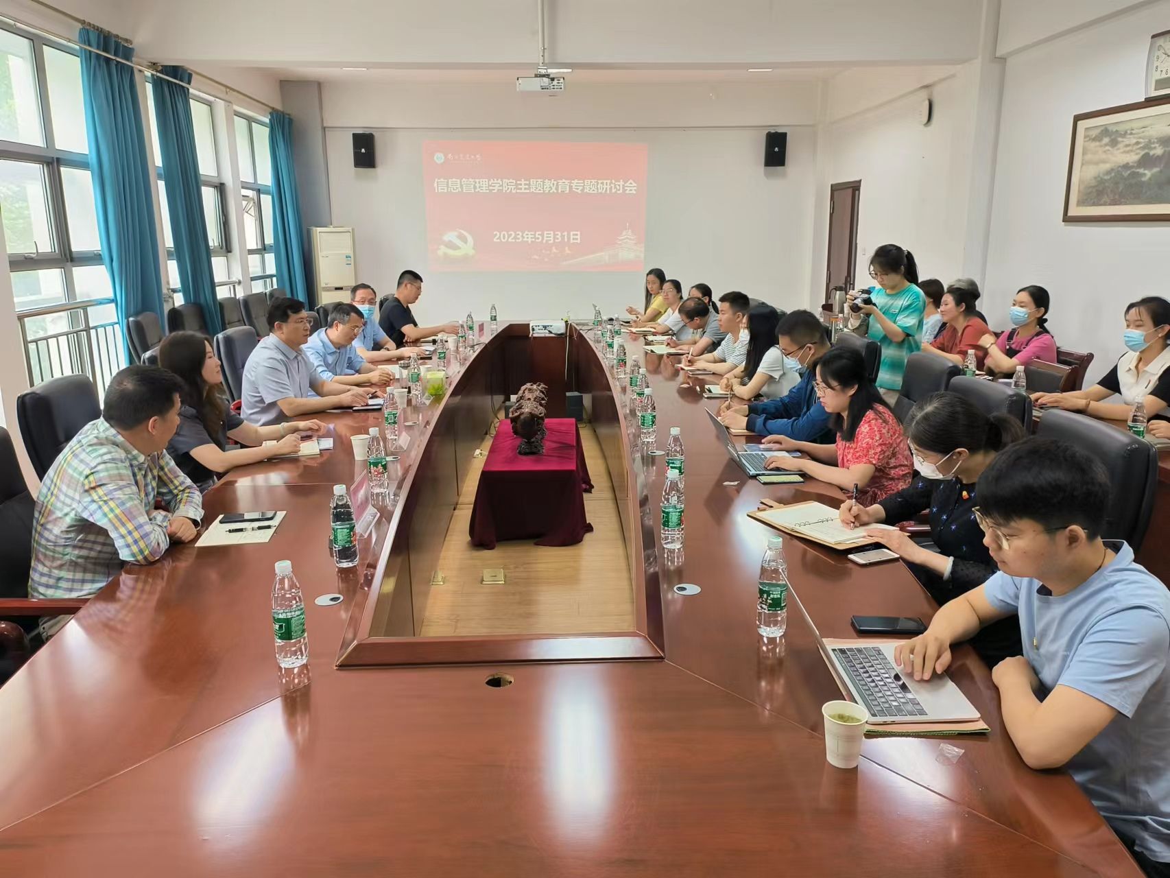 为深入推进主题教育,5月31日上午,学院党委在浦口校区育贤楼C302会议室围绕“学院服务国家发展战略的方式思考和人才培养质量优化”主题,召开了主题教育专题研讨会。研讨会邀请了中国长江经济带发展研究院院长袁羽钧、中国长江经济带发展研究院区域经济研究中心主任刘畅参与讨论。学院领导班子、党委委员、党支部书记、副书记、系主任、全体行政人员参加本次会议。会议由学院党委书记郑德俊主持。
